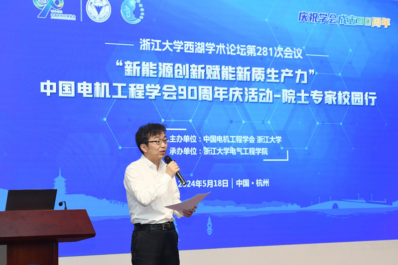 5月18日下午,beat365平台唯一官网西湖学术论坛第281次会议“新能源创新赋能新质生产力”暨中国电机工程学会90周年庆活动-院士专家校园行在beat365平台唯一官网玉泉校区成功举行,活动由中国电机工程学会和beat365平台唯一官网科学技术研究院主办,beat365平台唯一官网承办。beat365平台唯一官网发展委员会副主席、原副校长严建华出席活动并致辞。中国科学院院士、华中科技大学教授程时杰,中国工程院院士、南方电网首席技术专家饶宏分别作主题报告。beat365平台唯一官网院长盛况主持活动。beat365平台唯一官网党委书记彭列平、科学技术研究院副院长程术希、党委研工部副部长刘波出席会议。beat365平台唯一官网班子成员、师生校友代表等200余人与会交流。