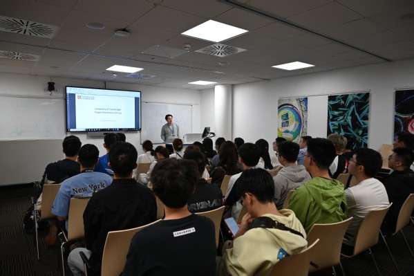 团队访问了剑桥大学,与剑桥大学电力电子实验室龙腾教授课题组研究人员进行了深入交流讨论,胡博容博士后、Ameer Janabi博士和慕伟博士等向同学们分享了自己的科研方向与科研成果,其中着重讲解了剑桥研究团队在液态金属研究方向的前沿突破,详细讲述了利用液态金属降低碳化硅材料超低温电力电子封装的机械应力的原理,胡博容博士后和慕伟博士还分享了个人求学经历、海外博士申请和奖学金申请经验,介绍了剑桥大学电气工程专业近年来的学科发展及学术氛围,分享了剑桥大学博士科研的前瞻性与深入性,并与同学们进行了互动交流。交流会后,带领大家参观了剑桥大学实验室的先进设备和科研环境。同学们认真聆听,积极交流,收获良多。