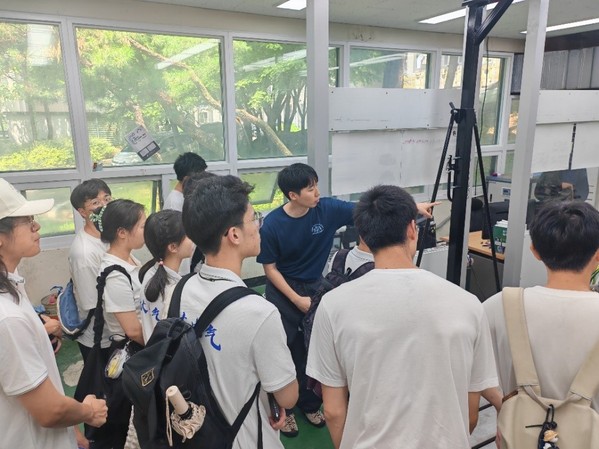 之后,高丽大学学生带领实践团队参观了高丽大学校园,为同学们介绍了仁村纪念馆、校图书馆、X-GARAGE创新工坊等场所,让同学们全方位地了解了高丽大学的校园环境与设施。在参观中,同学们积极与高丽大学学生交流分享学习与生活经历,学生们收获颇丰。