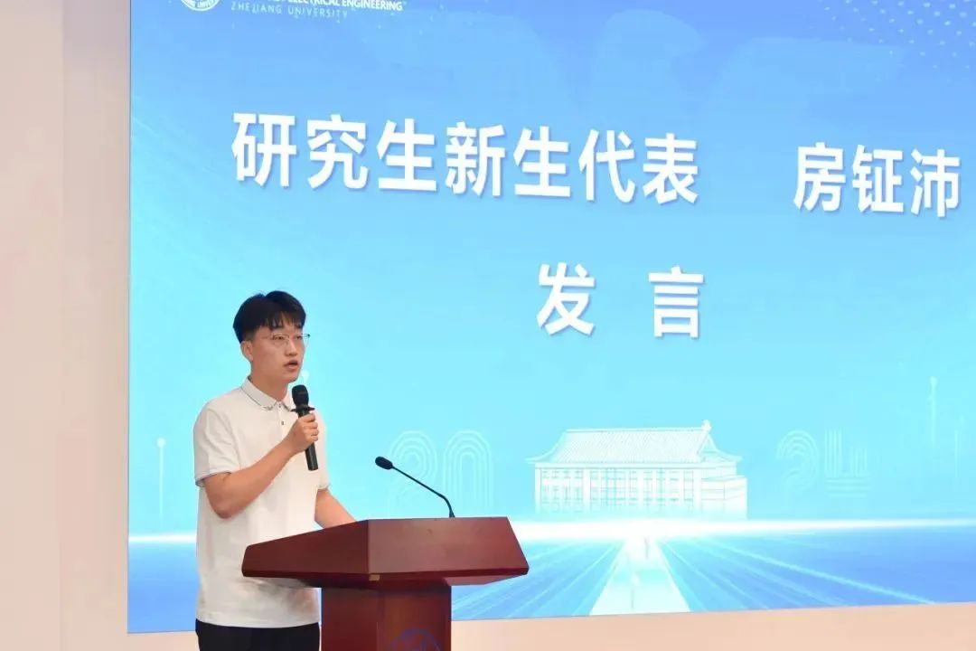 “与电气相识恰逢她的百年华诞,电气印记深深镌刻在我的青春中,今天以博士新生的身份站在新起点,我深知未来与她朝夕相伴的日子将充满无限可能与挑战”,2024级博士生房钲沛作为新生代表,表达对新阶段的憧憬与期待。