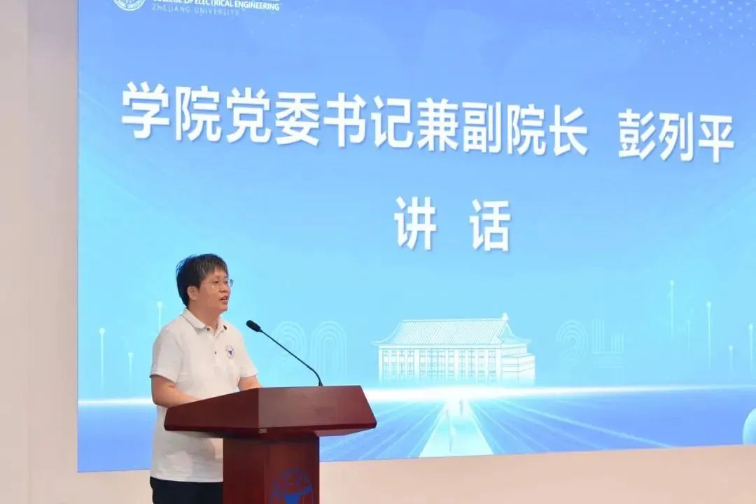 彭列平老师亲切欢迎各位新同学加入电气大家庭,“学问之道,如切如磋,如琢如磨”,她期待同学们在电气学院完成从学生到学者的精彩蝶变,追求全面发展,敢于担当责任,将个人理想追求融入党和国家的事业中。