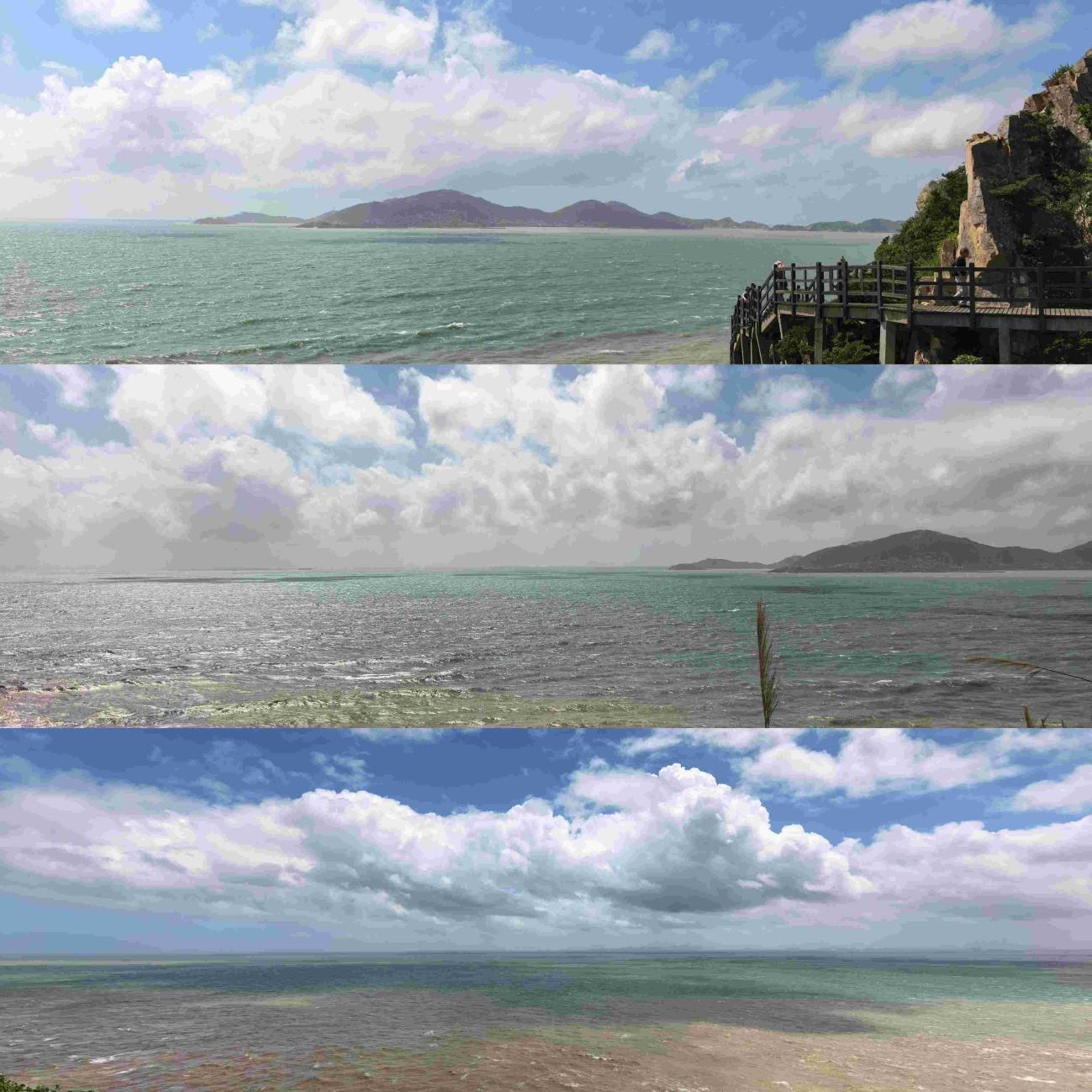 在六合朝阳景区,大家登高望远,壮丽的海蚀地貌与磅礴的东海,景象令人叹为观止,相机快门声此起彼伏,记录下这大自然的鬼斧神工。