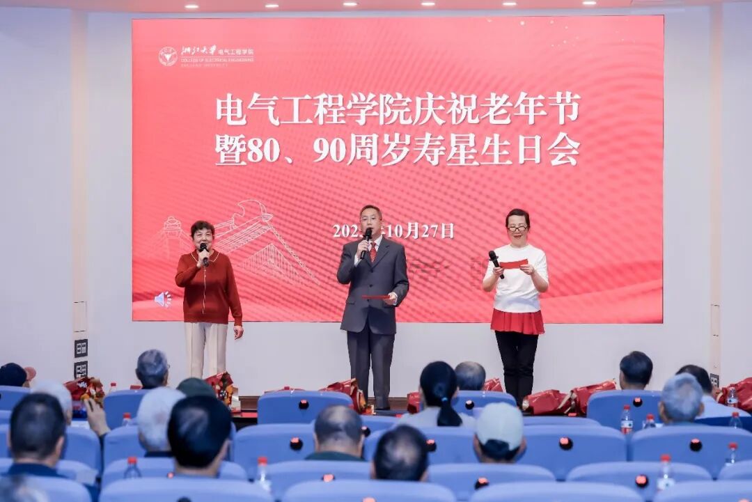 李虹在报告中向各位寿星、全体老同志致以最衷心的感谢和最诚挚的祝福,并介绍了学院近年来的发展状况和成果,以及学院未来发展计划。她表示,学院发展成绩的取得,凝结着全院师生的智慧与汗水,更离不开各位老领导、老教师打下的坚实基础和长期以来的殷切关怀与大力支持。她强调,学院当前正处在谋划“十五五”发展规划的关键时期,全院上下正凝心聚力,为将学院建设中国特色世界一流电气工程学科而奋力前行。学院将始终铭记老同志们的贡献,尽全力做好服务保障工作,让大家能够安享幸福生活。