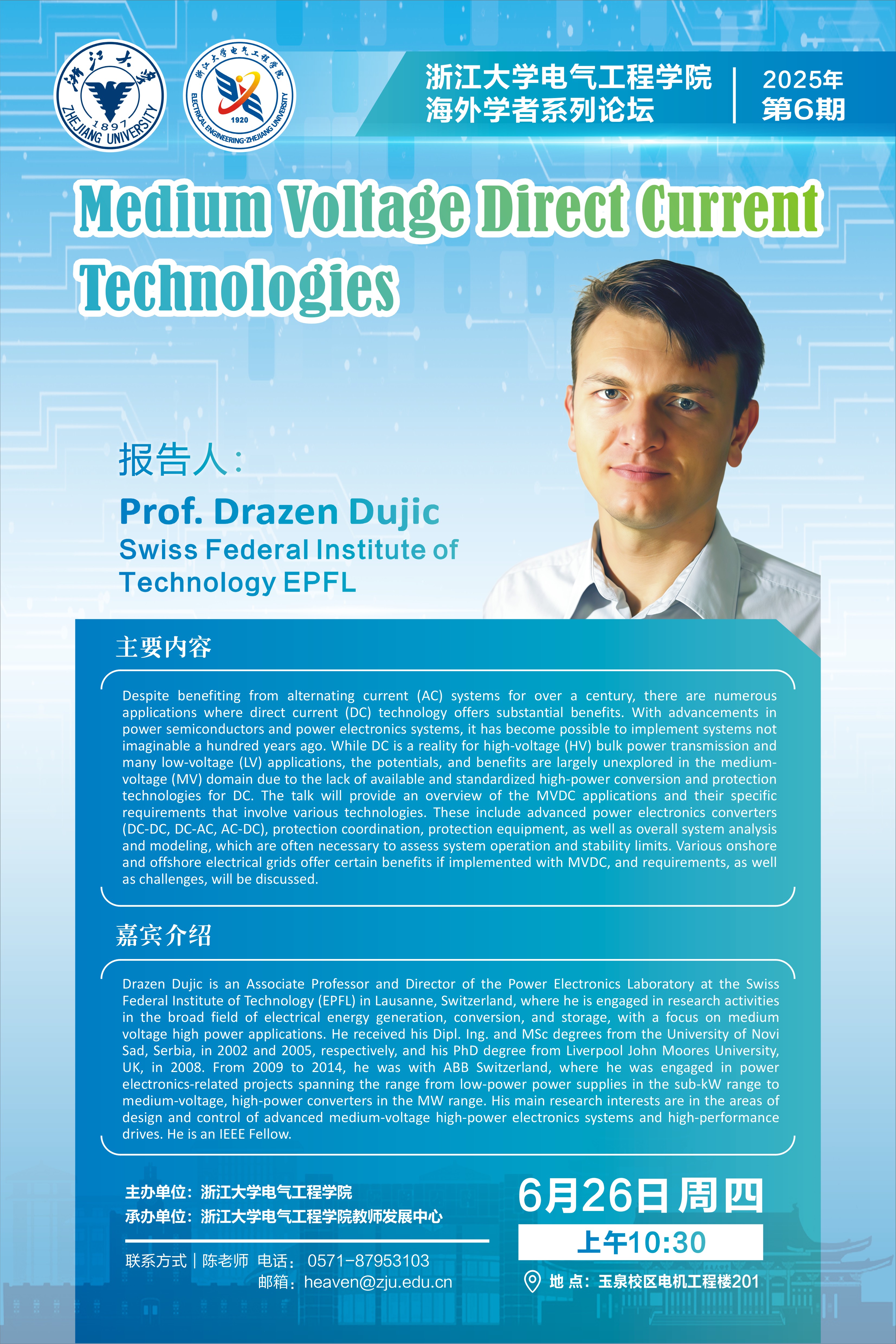 2025 海外学者系列论坛 No.6|瑞士洛桑联邦理工学院副教授Drazen Dujic学术报告