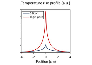 Figure 2: Temperature rise in a glass-based perovskite module versus that in a silicon module. Source: Joule 2022.