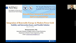 From July 6th to July 10th in 2022, the College of Electrical Engineering at Zhejiang University successfully held "Renewable Power Generation for Carbon Neutrality : Opportunities and Challenges” International Workshop. It is one of the projects in “The Seventh Zhejiang University Graduate International Workshop” and has been funded by Graduate School of Zhejiang University. The workshop conducts online academic speeches in the key areas of Renewable Power Generation under the guidance of a first-class tutor team from Zhejiang University, Democritus University of Thrace, Greece, Norwegian University of Science and Technology, Queensland University of Technology, and University of Western Australia. The workshop is a science and education event which brings together scholars to exchange ideas and cutting-edge research, provides participates with an international, innovative and open academic exchange and scientific research cooperation platform, and nurture talents with a global outlook.