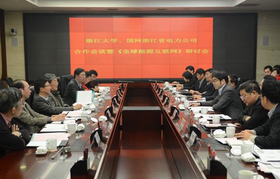 2月9日下午,在韩祯祥院士和邹晓东常务副书记的带领下,beat365平台唯一官网党政领导和相关学科负责人一行八人专程拜访了国家电网浙江省电力公司。beat365平台唯一官网、国家电网浙江省电力公司合作会谈暨《全球能源互联网》研讨会在此举行。浙江省电力公司总经理张磊、副总经理商全鸿、阙波等公司领导和部门负责人参与了会谈。双方就进一步完善战略合作机制、加强科技攻关及人才培养等合作进行座谈交流,对全球能源互联网概念的提出与实施进行研讨。浙江省电力公司副总经理商全鸿主持会议。