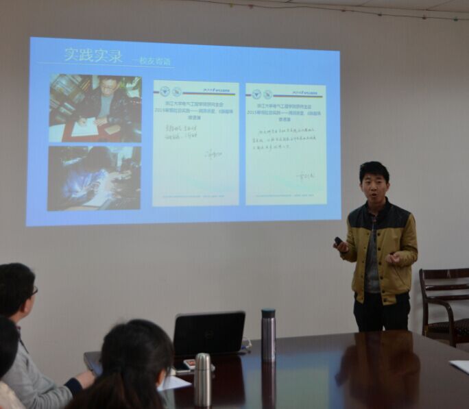 为检验实践成果,学院团委于3月13日下午,在教二405举行了社会实践成果展示交流会。陈敏老师、卢俏老师、李涛老师和赵梓杉老师担任了此次展示的评审。李涛老师总结实践工作、强调上交材料要求后,展示正式开始。