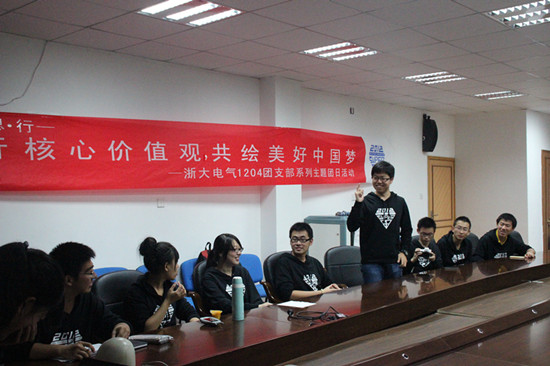 自由分享环节,同学们不仅分享了自己心中道德模范,也就社会主义核心价值观各抒己见,思维火花的迸射引发了同学们更为深入的思考。在所分享的案例中,有感动中国十大人物,也有我们身边的真人真事,比如电气学院七十多高龄但依旧坚持上课、爱岗敬业的倪光正老师。从媒体上一个个有着耀眼光芒的杰出人物,到我们身边的点点滴滴,同学们的分享让我们真正接受了一次社会主义核心价值观的洗礼!