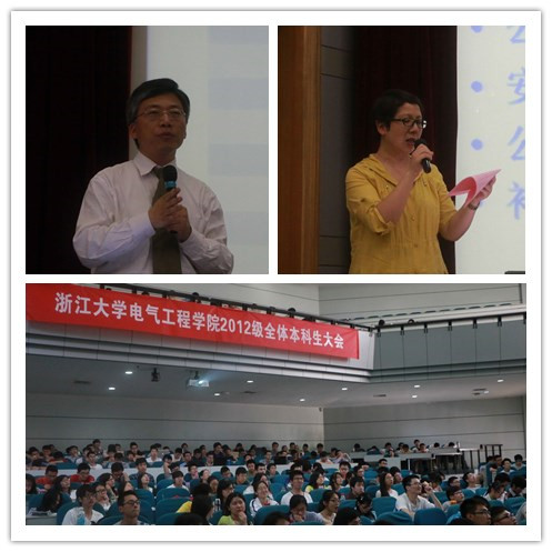 学院副院长马皓教授,学院本科生科科长杨敏虹老师,学院党委委员、团委书记陈敏老师,应电系教学主任王正仕老师、系统系教学主任姚维老师、电机系教学副主任王慧芳老师、电控方向杨家强老师出席了本次大会。大会由学院本科生科科长杨敏虹老师主持,分为两个阶段:第一阶段为2011级启动“卓越计划”实施工作宣讲会,第二阶段为2015届毕业生的就业动员大会。